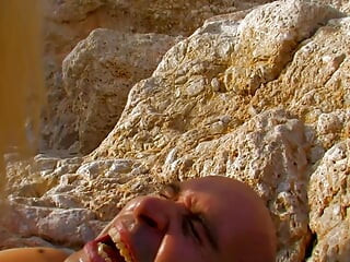 Blondă goală uimitoare pe plajă futută de o pulă mare